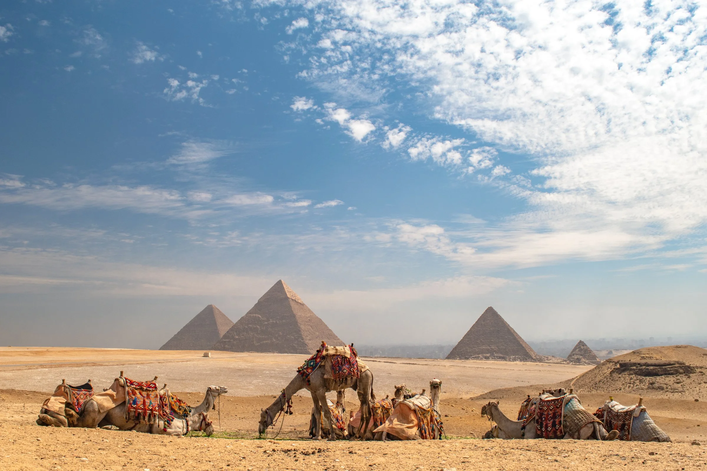 Experience the ultimate Giza Pyramids guided tour. See the Great Sphinx, enjoy a desert camel ride, and explore the Grand Egyptian Museum with an expert Egyptologist. Book your adventure today
